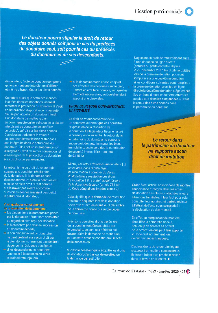 3 mars 2020 La clause de retour conventionnel dans un acte de donation Même s’il ne faut pas penser au pire, votre notaire a le devoir de prévoir toutes les situations.